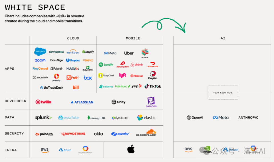 对风险投资最有趣的层。在云转型期间创建了约20家收入超过10亿美元的应用层公司,在移动转型期间又创建了约20家,我们怀疑在这里也会如此。