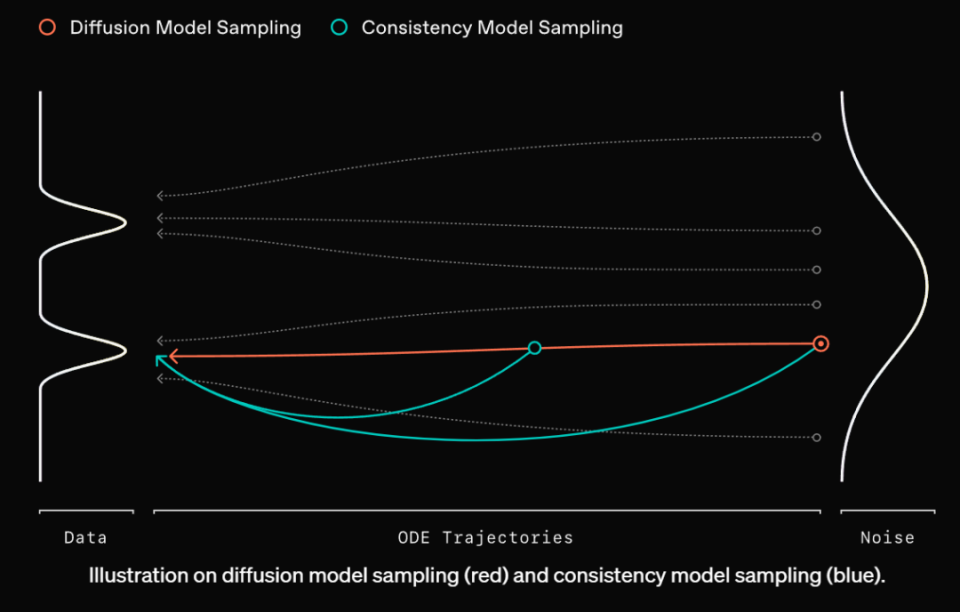 OpenAI 介绍称,从技术原理来看,传统扩散模型实现生成样本通常有大量去噪步骤的过程,这也是其速度慢的主要原因。